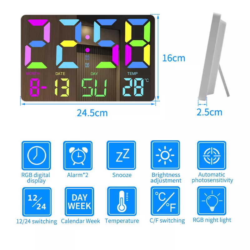 ساعة حائط 1.11.2 بوصة، 12 ساعة/24 ساعة للتبديل